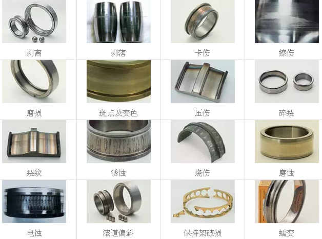軸承損傷方式分類見下圖,根據(jù)圖片中顯示的主要特征判斷其損傷形式。