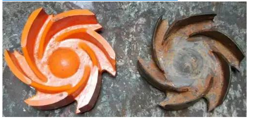 水泵壁面在高強度沖擊力的反復作用下,金屬表面產生局部變形與硬化變脆,產生金屬疲勞現象,使金屬破裂與剝落。除力學作用外,還夾雜著水體中逸出的深入活潑氣體(如氧氣)對金屬的化學腐蝕以及水體對金屬的電化學腐蝕等。在綜合作用下,水泵壁面起初是出現麻點,繼而變成蜂窩狀,嚴重時壁面會在短期內被擊空。