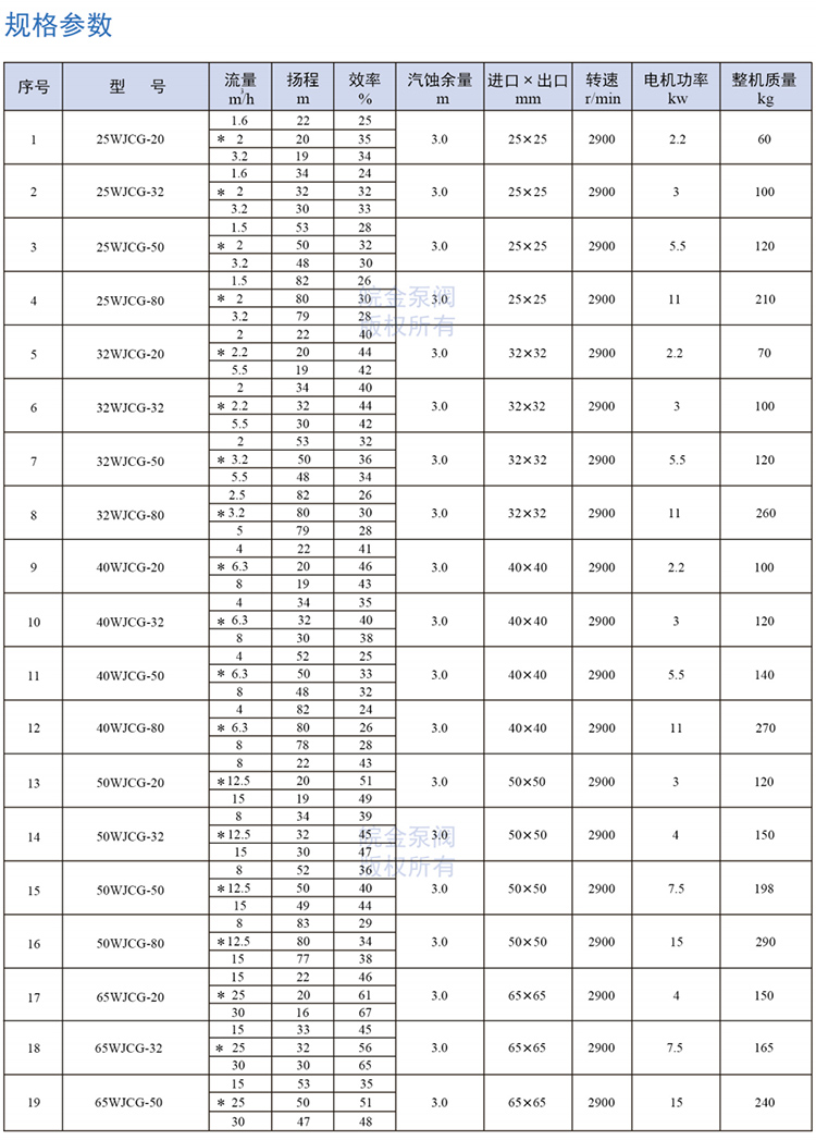 皖金泵閥不銹鋼磁力管道泵主要參數(shù):