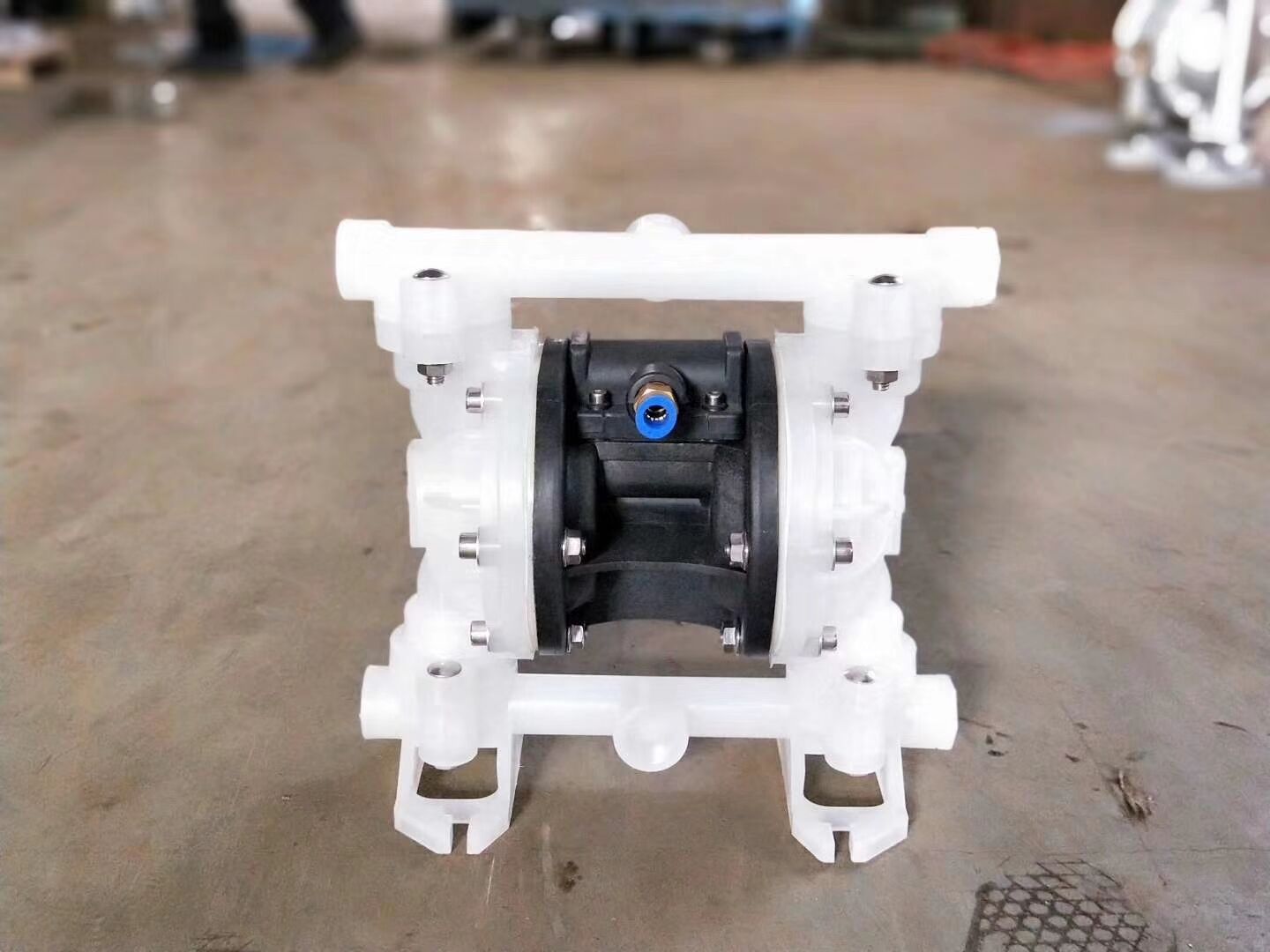 概述:隔膜泵是一種新型輸送機械,是目前國內新穎的一種泵類。采用空氣壓縮機壓縮空氣為動力源,對于各種腐蝕性液體,帶顆粒的液體,高粘度、易揮發、易燃、劇 毒的液體,均能予以吸