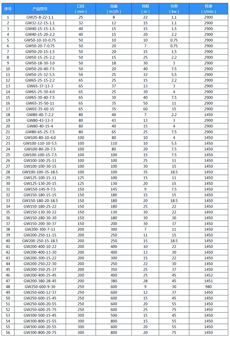 GW型管道式無堵塞排污泵是在成熟技術的基礎上,結合國內水泵的使用特點而研制成功的新一代泵類產品,具有節(jié)能效果好、防纏繞、無堵塞、自動安裝和自動控制等特點。在排送固體顆粒和長纖維垃圾方面,具有很好效果。