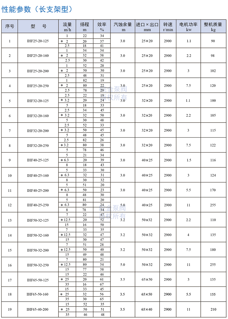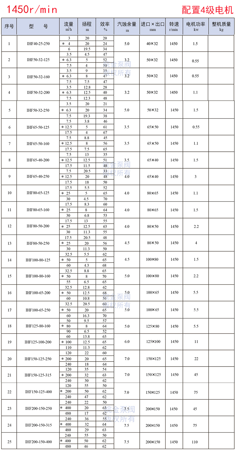 皖金泵閥氟塑料離心泵主要參數(shù):