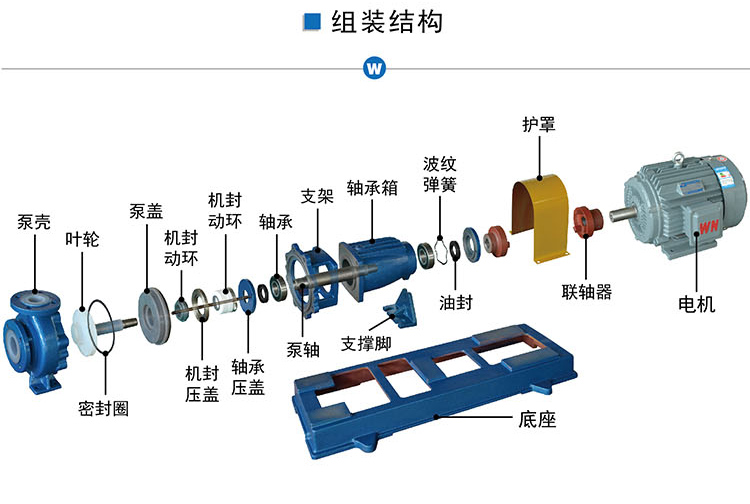氟塑料離心泵又稱其為塑料離心泵、襯氟離心泵、耐腐蝕離心泵,IHF-L氟塑料離心泵長支架型和短支架型。