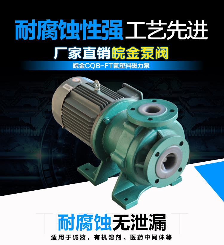 氟塑料磁力泵又稱其為氟塑料磁力離心泵、氟塑料磁力驅動泵、耐腐蝕磁力化工泵,CQB-FT襯塑磁力泵是我公司氟塑料磁力泵中的全新升級款型。