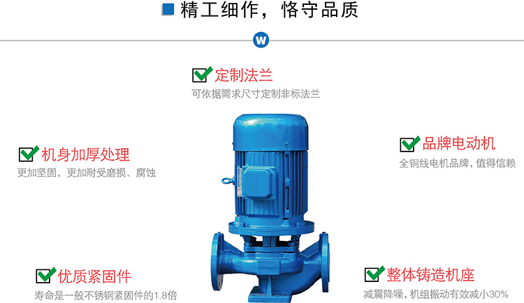 1、泵為立式結(jié)構(gòu),進出口口徑相同,且位于同一中心線上,可象閥門一樣安裝于管路之中,外形緊湊美觀,占地面積小,建筑投入低,如加上防護罩則可置于戶外使用。