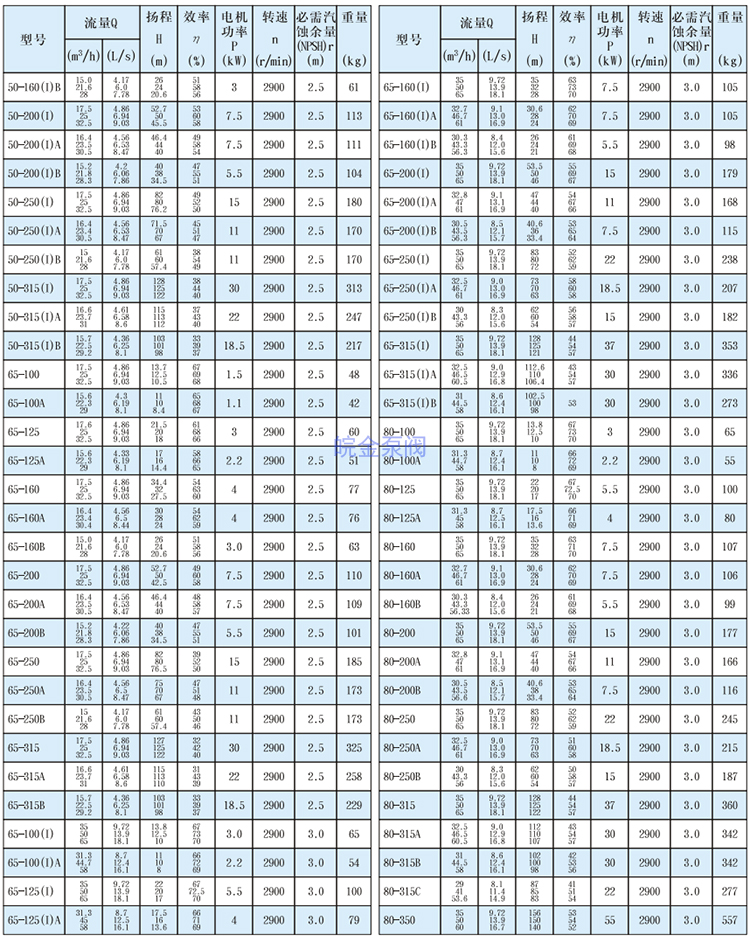 皖金泵閥立式管道離心泵主要參數(shù):