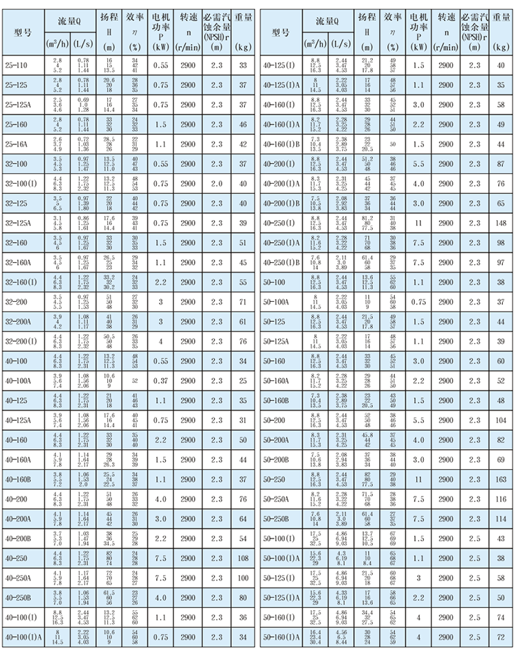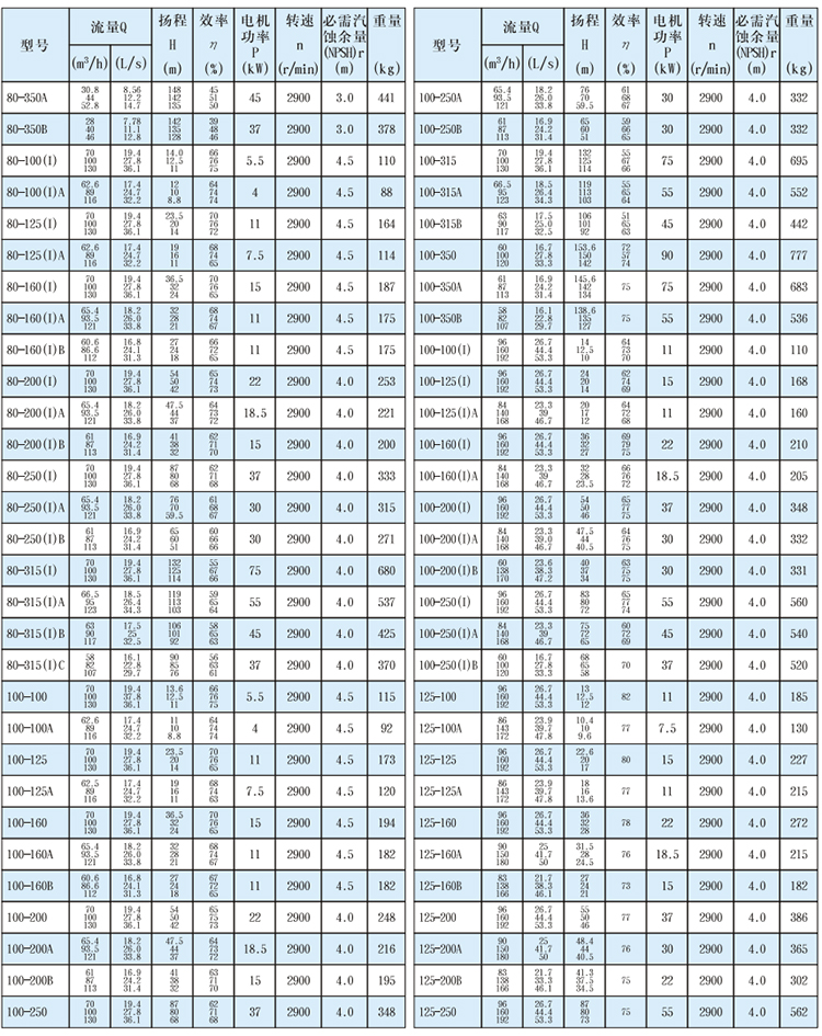 皖金泵閥不銹鋼臥式離心泵主要參數: