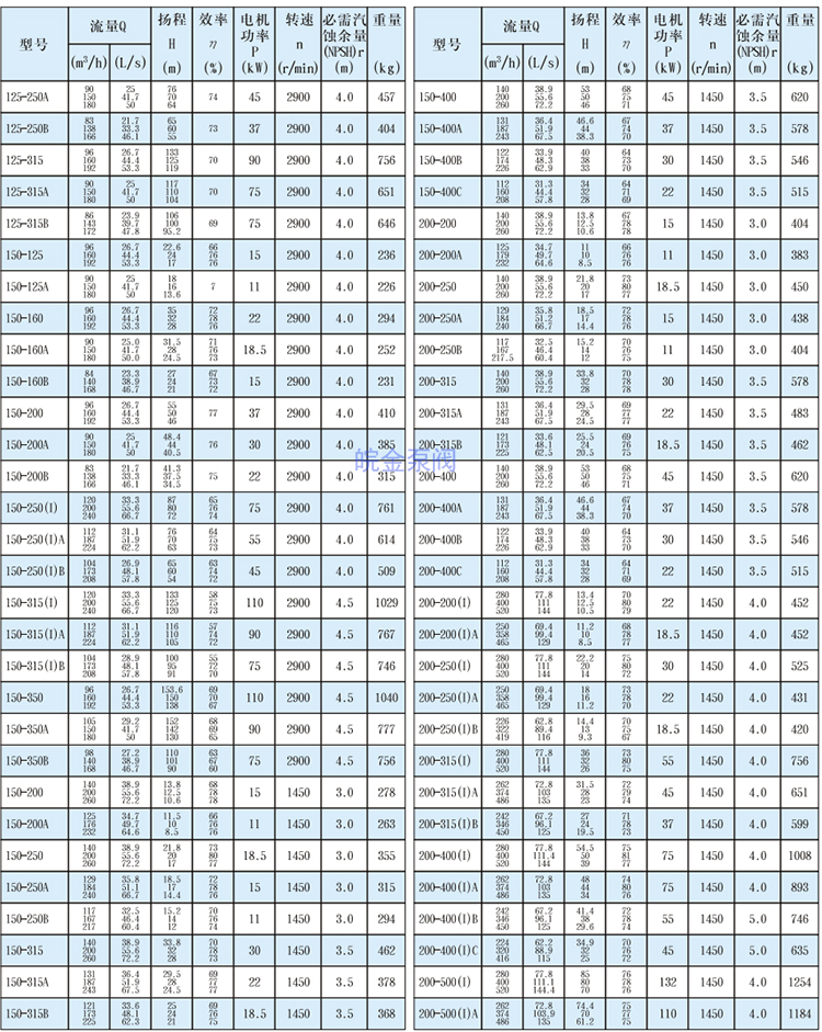 皖金泵閥不銹鋼臥式離心泵主要參數: